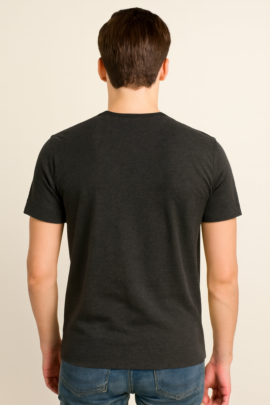 Charcoal Grey Cotton Hosiery Round Neck T-shirt