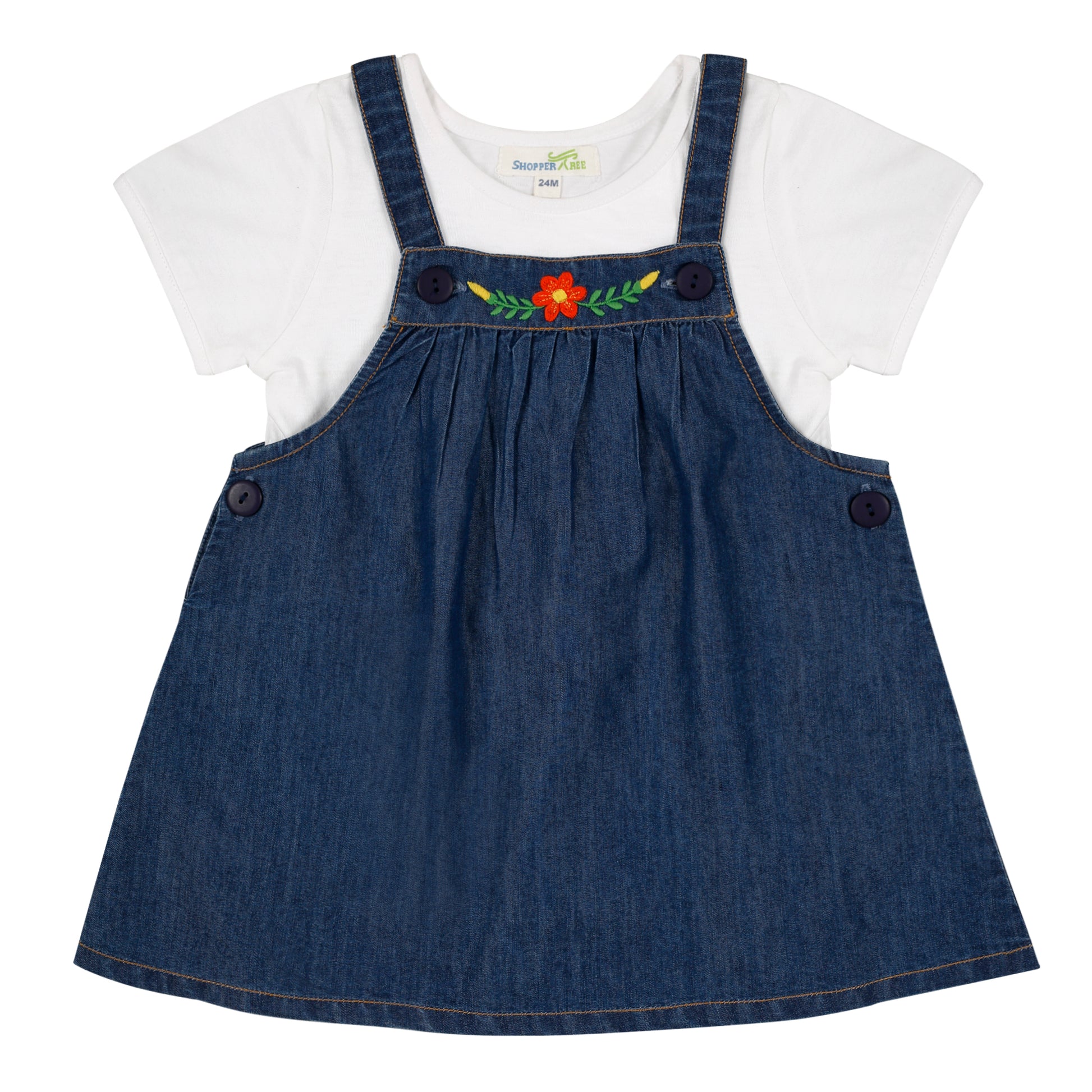 Shoppertree Blue Denim Dungaree With Cotton Hosiery T-shirt