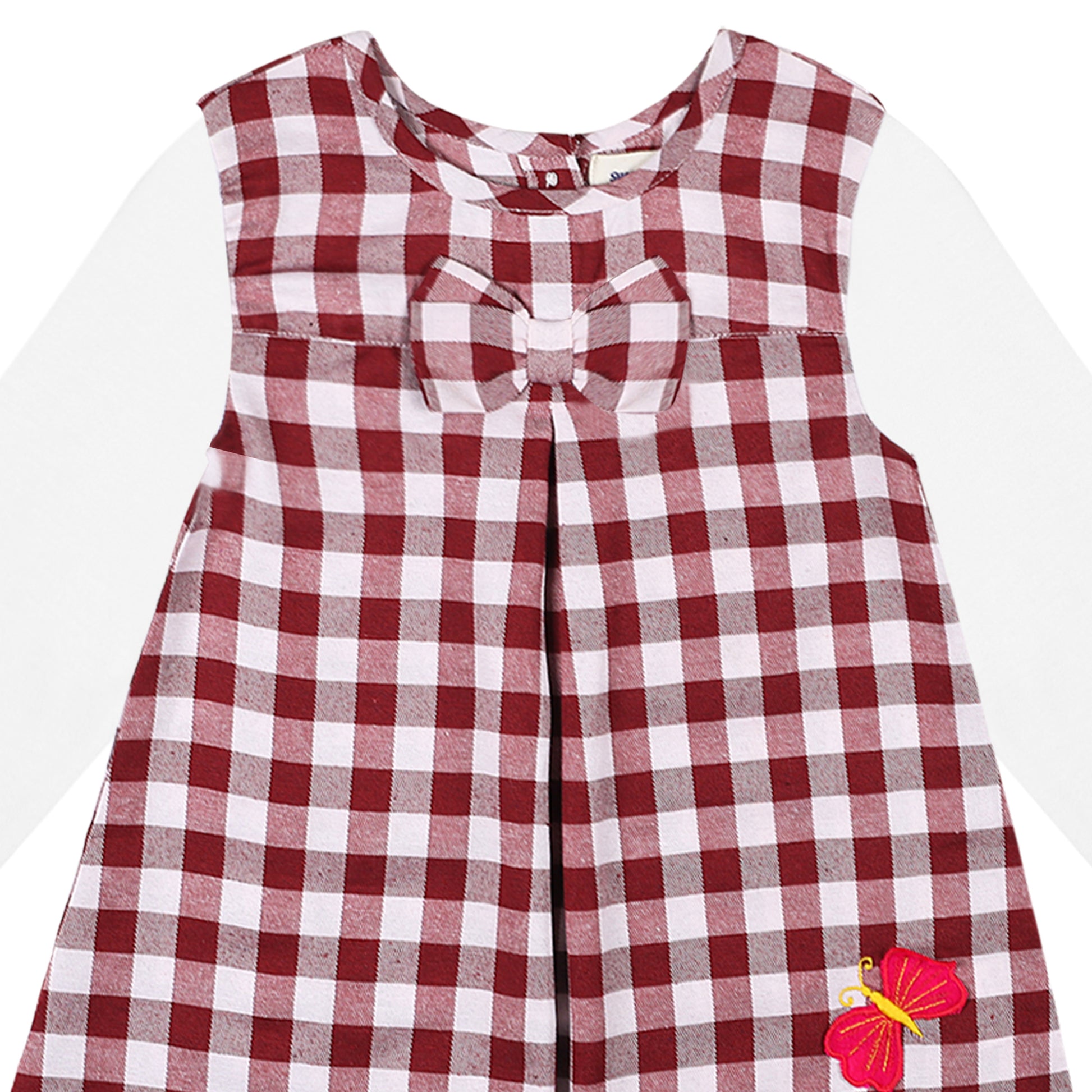 Designed with attention to detail, the checkered cotton and hosiery fusion-dress boasts a relaxed fit that allows for easy wearing and removal, ensuring hassle-free dressing for both parents and kids alike. Its modest yet stylish appeal makes it a go-to choice for family gatherings, casual outings, or special occasions, keeping your child looking effortlessly chic.