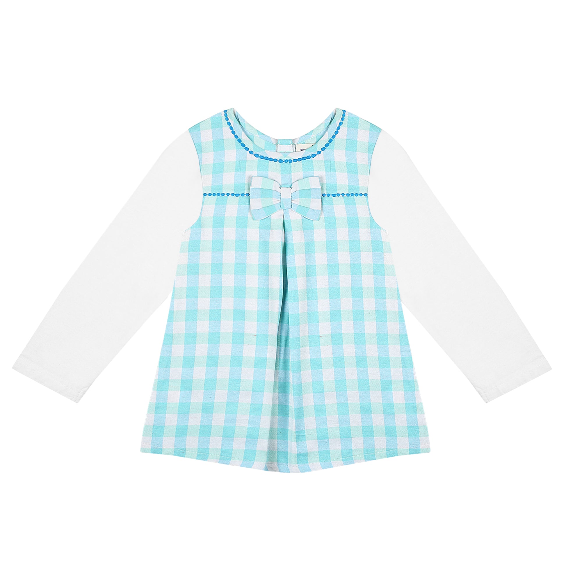 Designed with attention to detail, the checkered cotton and hosiery fusion-dress boasts a relaxed fit that allows for easy wearing and removal, ensuring hassle-free dressing for both parents and kids alike. Its modest yet stylish appeal makes it a go-to choice for family gatherings, casual outings, or special occasions, keeping your child looking effortlessly chic.