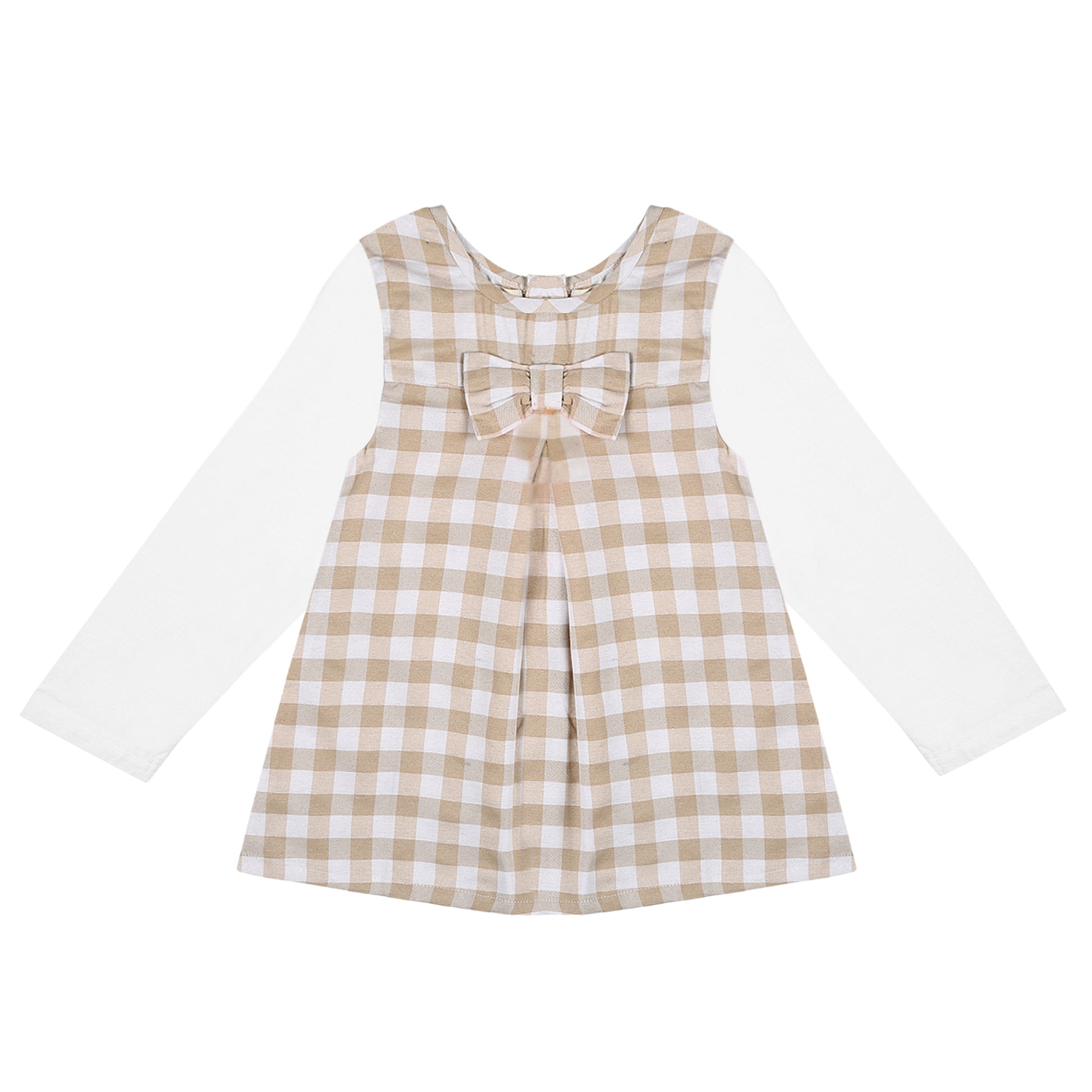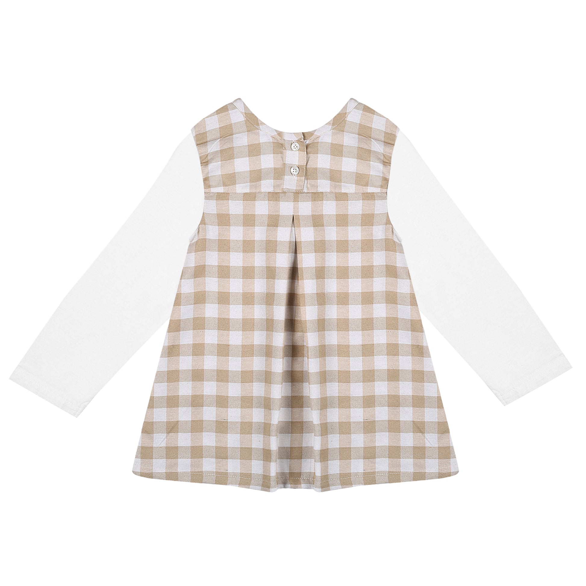 Designed with attention to detail, the checkered cotton and hosiery fusion-dress boasts a relaxed fit that allows for easy wearing and removal, ensuring hassle-free dressing for both parents and kids alike. Its modest yet stylish appeal makes it a go-to choice for family gatherings, casual outings, or special occasions, keeping your child looking effortlessly chic.