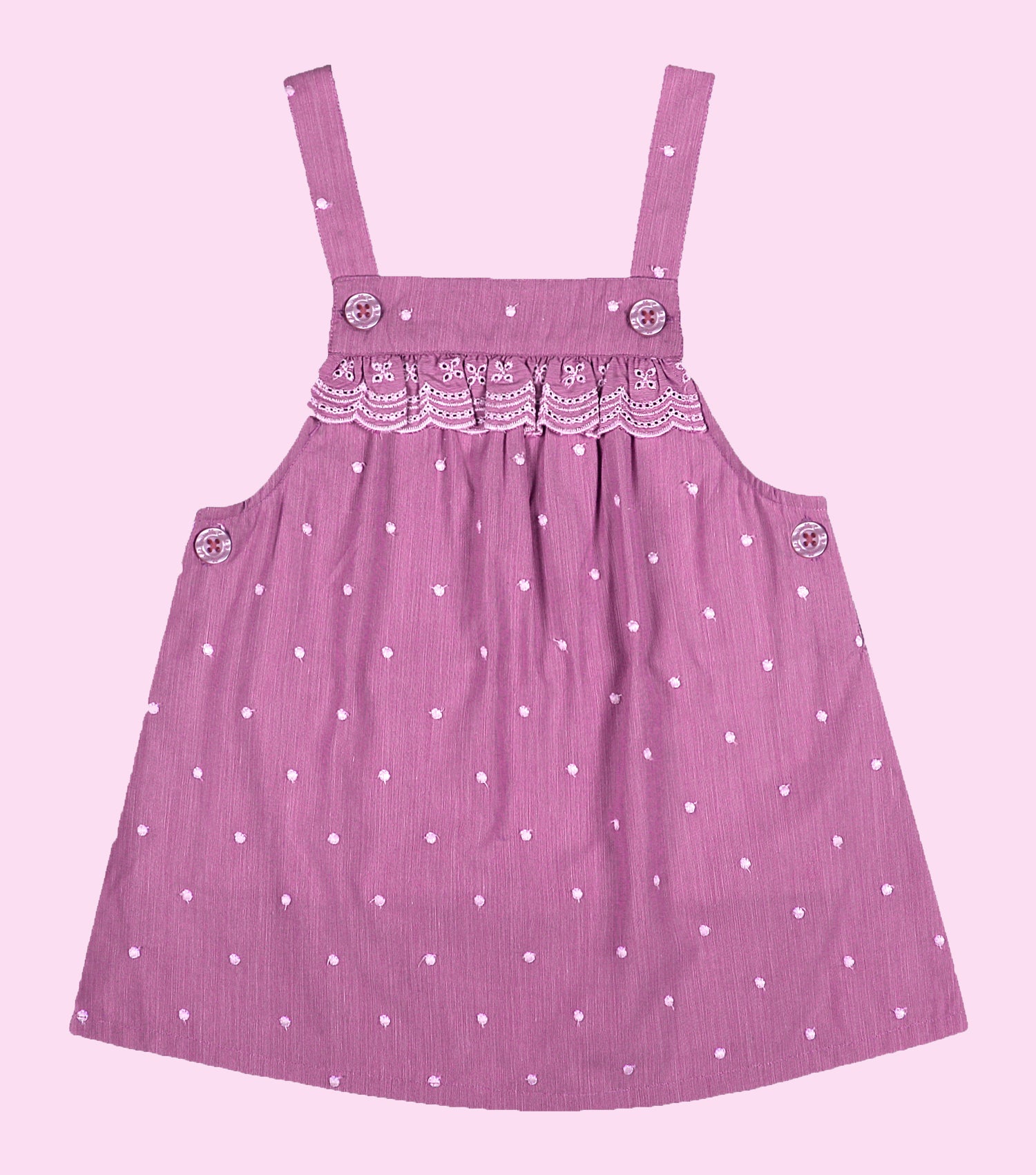 The charming Light Pink Embroidered Dungaree paired with a classic Black Cotton Hosiery T-shirt, meticulously crafted for your child's comfort and style. black cotton hosiery T-shirt features a classic round neck design, providing a timeless and comfortable neckline for everyday wear.