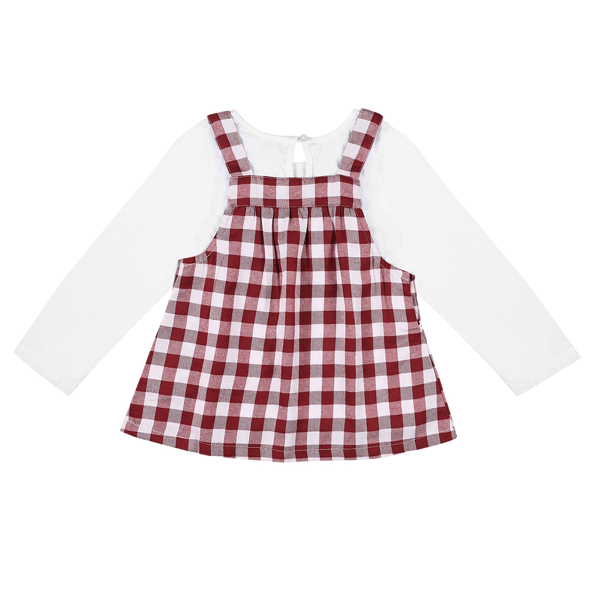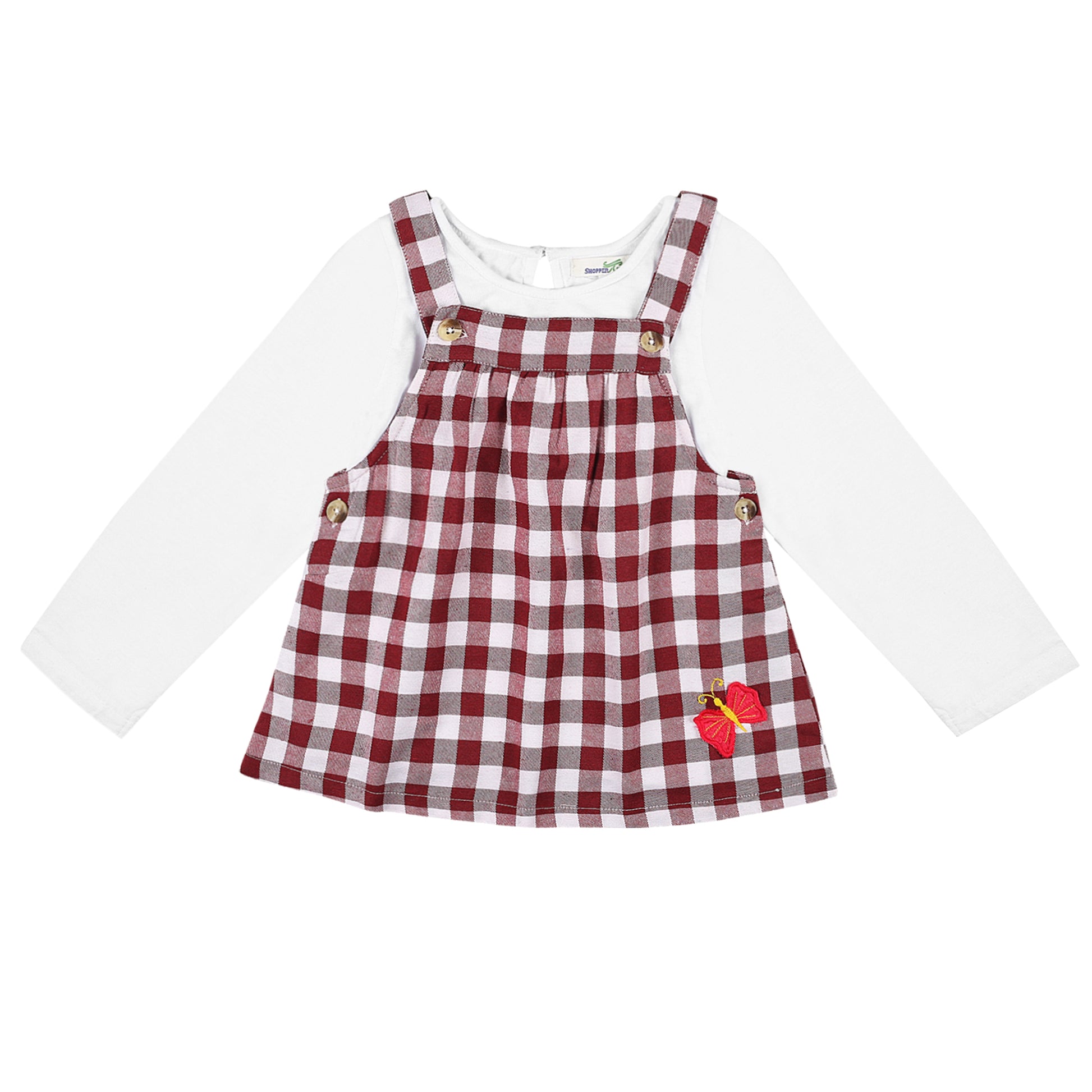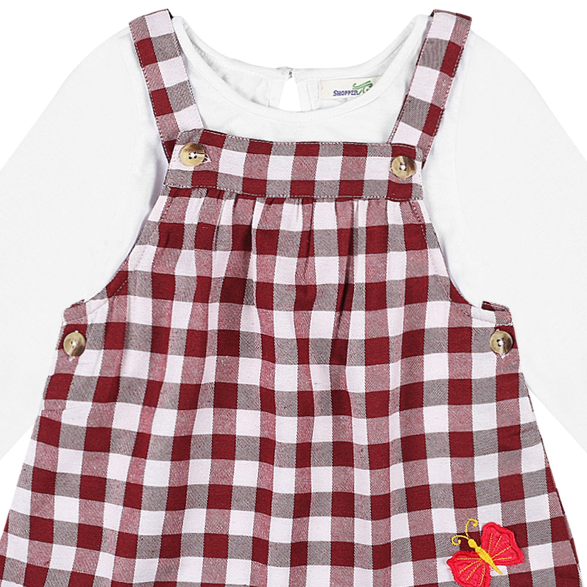 Shoppertree Maroon Checkered Dungaree with Full-Sleeve T-shirt