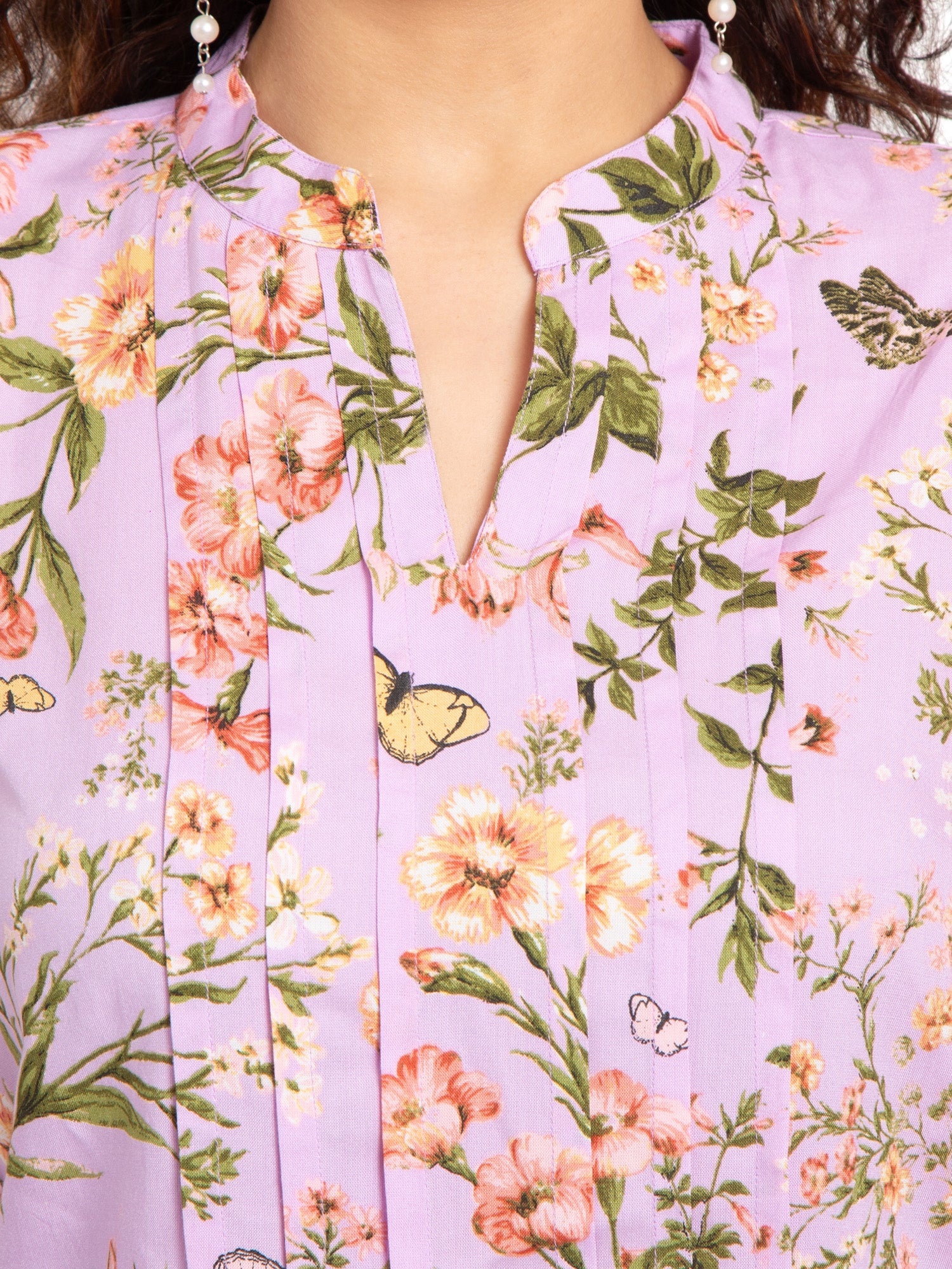 Our vibrant Multicolored Printed Rayon Top, featuring a sophisticated Mandarin collar and intricate pintex design for a stylish and elegant look. Complete the look with tailored pants or jeans and accessorize with statement jewelry for a chic and fashionable ensemble. Elevate your wardrobe with our vibrant and stylish Multicolored Printed Rayon Top, perfect for adding a pop of color and personality to any outfit.