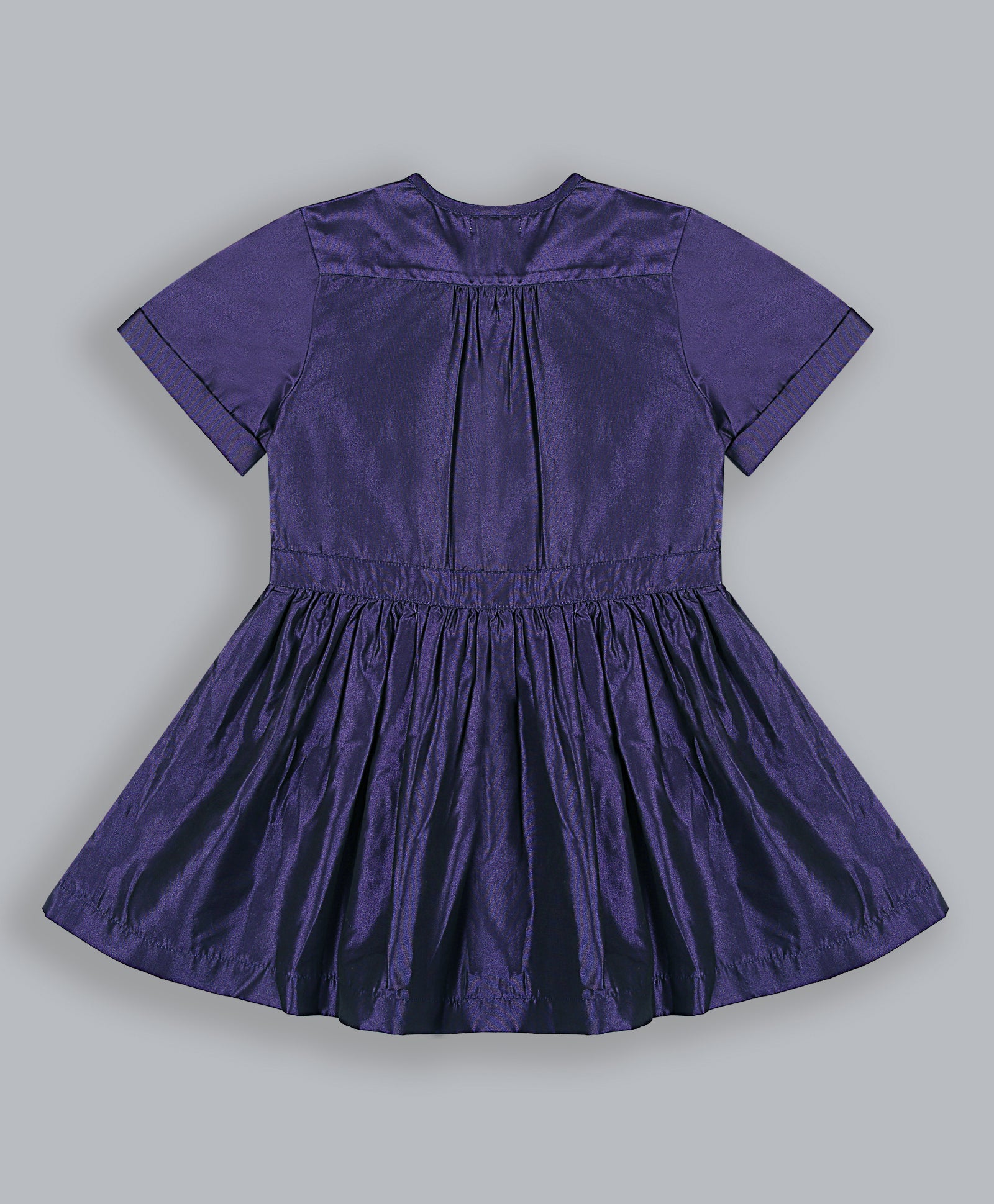 Solid violet dress with round neck & half sleeves gives a real one summerish look. This Polyester fabric with closure button in the front which is knee length, makes the dress perfect for this summer. This dress is undoubtedly a must one should have.